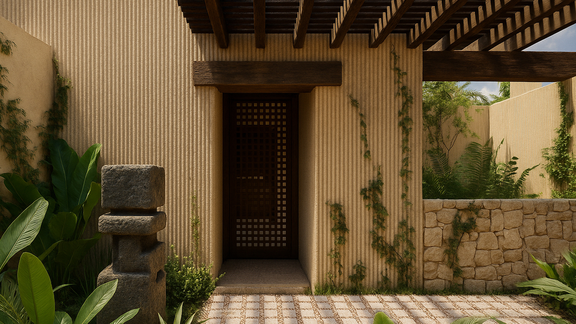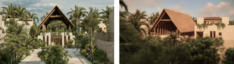 The architectural palette reflects the island’s textures and tones. Stucco, stone, textured concrete, natural stucco, travertine, and warm woods such as tzalam form a cohesive foundation for the homes.
