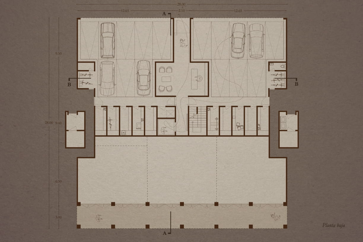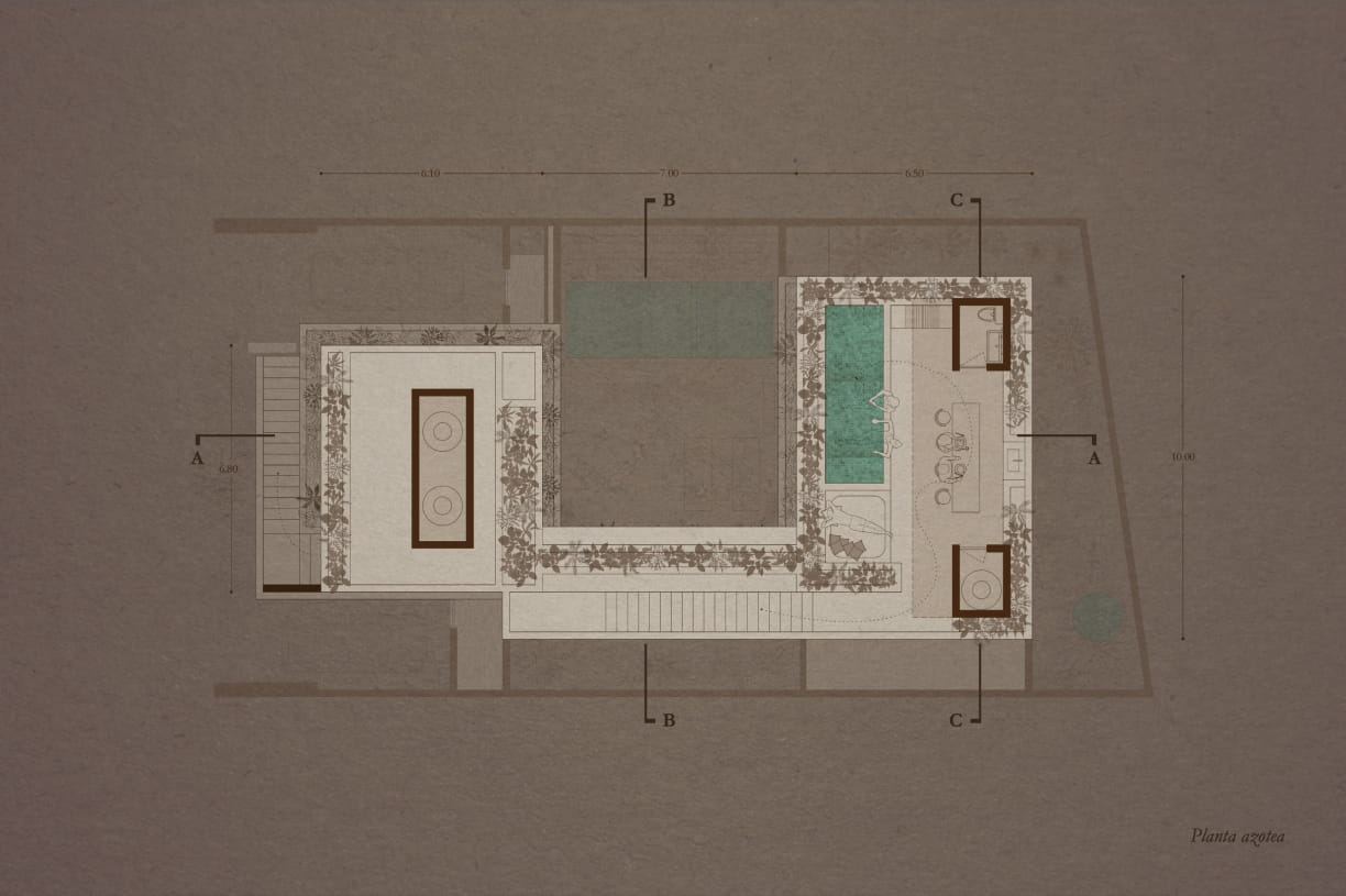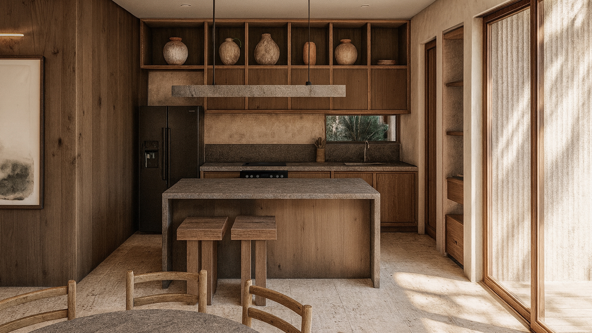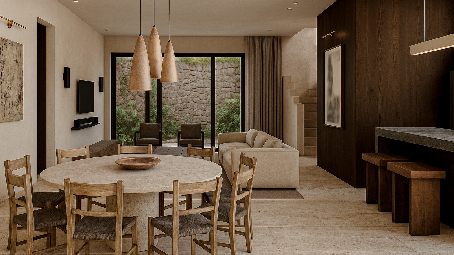 These materials were chosen for their durability, tactile quality, and ability to age gracefully in Cozumel’s coastal climate. Their earthy tones echo the surrounding landscape and reinforce the connection between the built and natural environments.