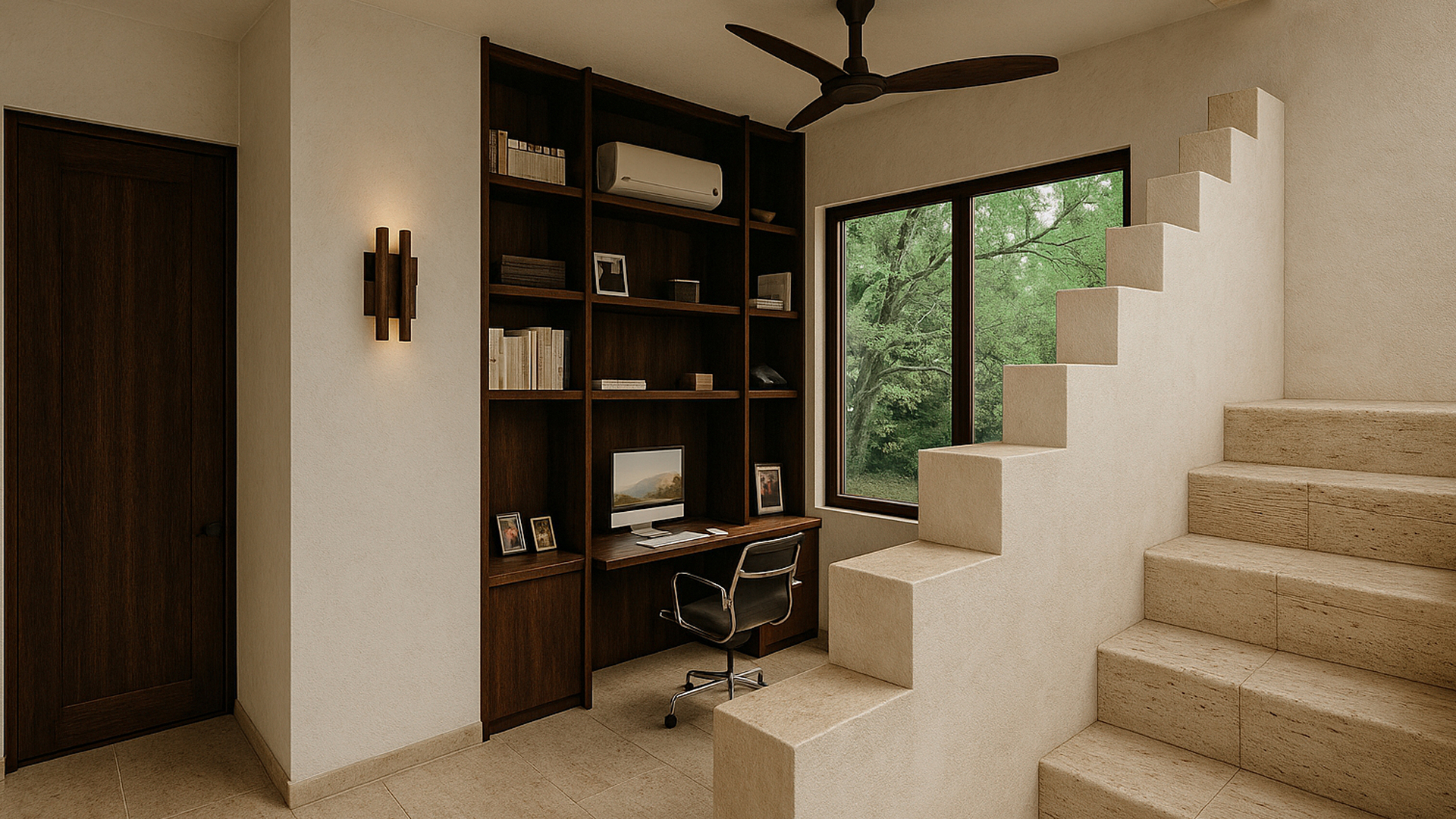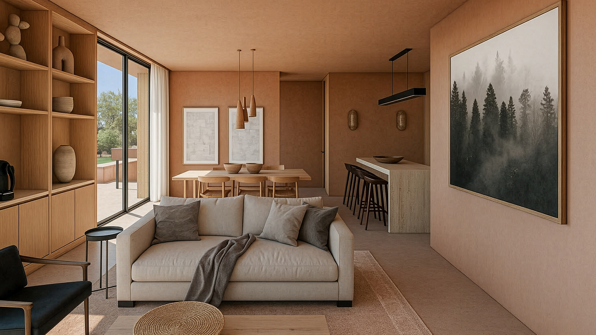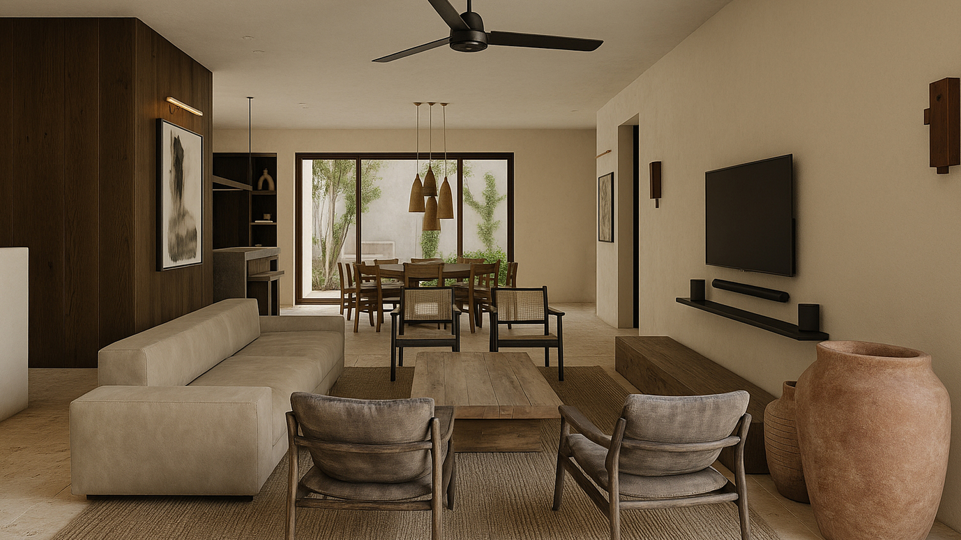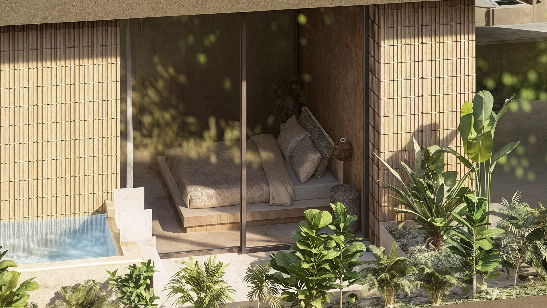 Natural ventilation, thoughtful shading, and native landscaping guide the experience throughout Anamaya. The pyramids include private terraces and open-air circulation that encourage airflow and light. Each villa is shaped around indoor–outdoor living, with spaces oriented toward gardens, courtyards, and natural illumination. This approach creates comfortable environments for both everyday routines and quiet moments of rest.