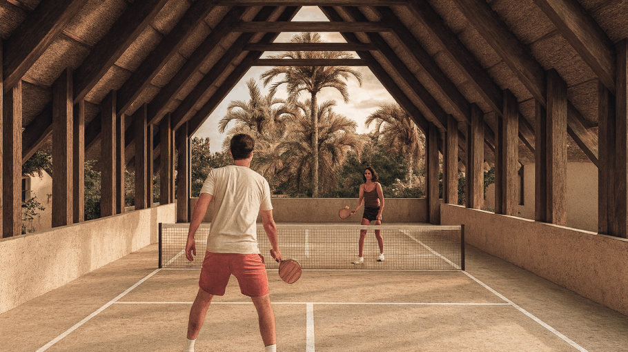 Residents enjoy a community shaped for well-being and connection, with lush gardens and quiet, shaded retreat areas. An elevated Pickleball court offers ocean-cooled play, while a fully equipped community gym supports daily movement and strength.